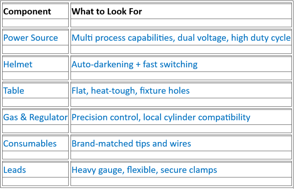 - Choose a versatile machine that supports multiple processes (MIG, TIG, Stick).